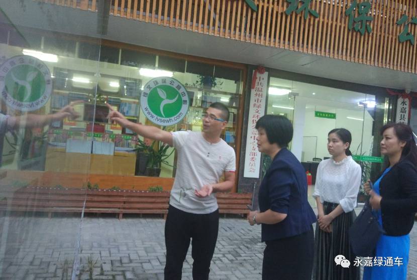 在绿文公益中心创始人刘彭的带领下,参观了绿文中心和县社会组织孵化基地共建共享等办公场所。
