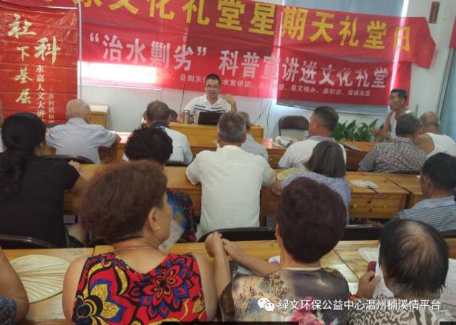 在文化礼堂现场,温州市绿文环保公益中心创始人、县委讲师团成员刘彭担任主讲,从从治水剿劣的背景、主要任务目标、全民联动等方面内容,大部分群众一开始对治水与劣劣的概念并不是很清晰,在近一个小时的宣讲后,表示对五水共治与剿灭劣V类水有了更加客观的了解,深刻认识到了全民治水的重要性。还结合省第十四次党代会精神等内容,用方言把治水剿劣科普知识与党代会精神内容相融合,讲的既全面又透彻,赢得群众的掌声!