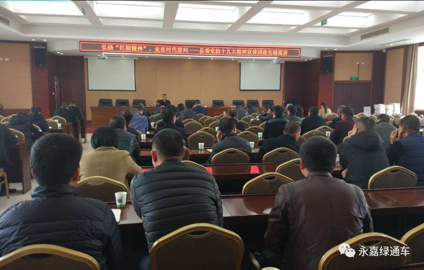 为贯彻党的十九大精神巡回宣讲走基层服务和学习弘扬红船精神实质。12月7日上午,县委党的十九大精神宣讲团成员、县绿文公益中心理事长刘彭受邀到北城街道开展以“十九大精神宣讲暨学习弘扬红船精神”专题报告会。北城街道党工委麻智慧主持。来自北城街道党员干部及各村党员代表100多人参加学习。