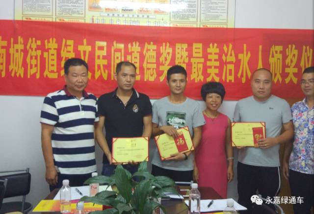 为了不断地传递和谐的民间道德风气,绿文公益中心成立了“绿文民间道德奖”通过设奖的方式激励更多的人参与和谐民间道德建设。9月1日,县绿文公益中心对首批“绿文民间道德奖”获得者进行颁奖,共有东岸村陈云芳、外山村尤松洲和东华村李小康等南城街道辖区内16位“最美治水人”获此殊荣。